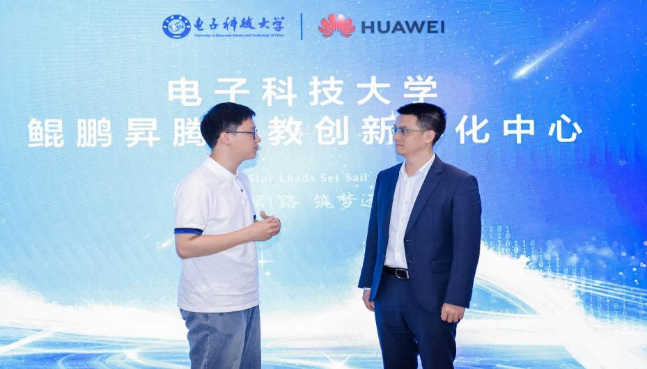 图3 - 项目负责人石祥均(左)向华为计算产品线副总裁张华桦(右)汇报项目进展